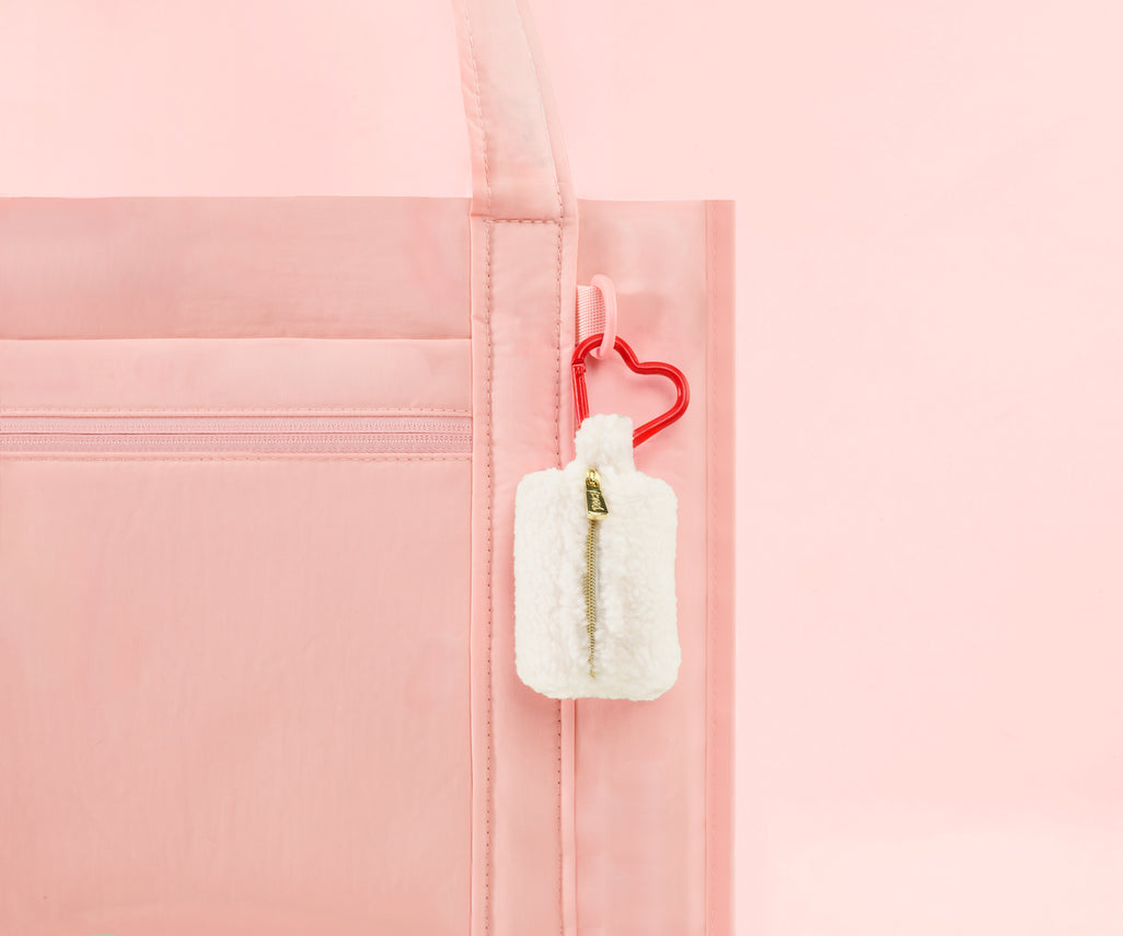 This Valentine's Day, present the gift of preparedness with Pinch Provisions' Sherpa Minimergency Charm in Ivory Heart. A beautifully crafted keychain that marries elegance with purpose, it houses eight essential items—breath drops, pill box, hand sanitizer, lip balm, bandage, hair tie, dental floss, and emery board—in a luxuriously soft sherpa exterior.